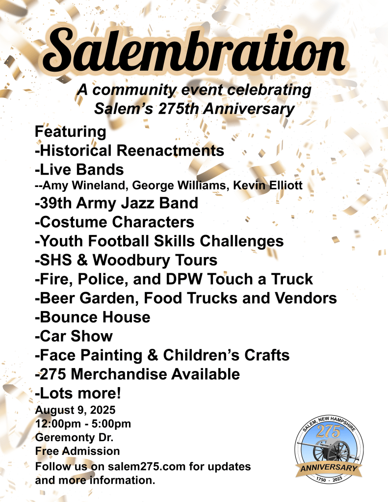 A celebration of Salem’s 275th anniversary. August 9, 2025 | 12pm-5pm