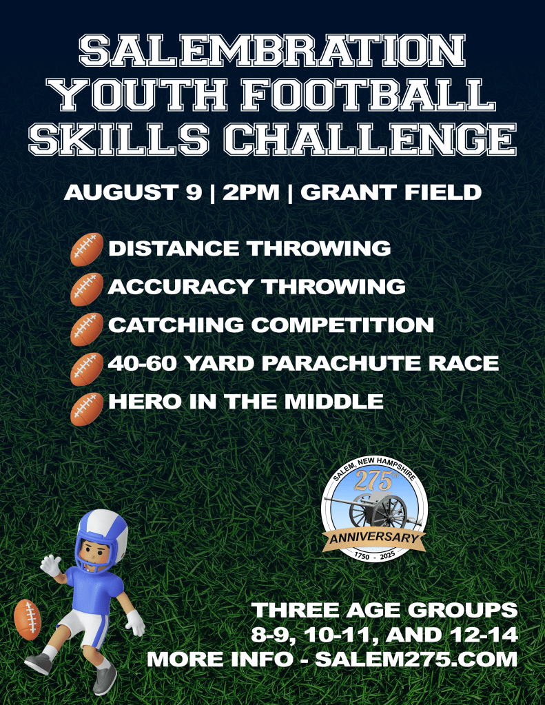 The Salembration Youth Football Skills Challenge will take place on Grant Field behind Salem High School starting at 2pm!